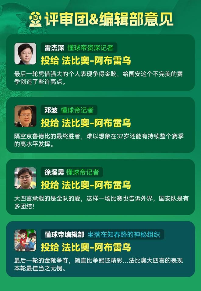 大家好,欢迎来到懂球帝2025赛季中超MVP评选现场。中超第30轮MVP得主出炉,北京国安前锋法比奥在末轮的金靴大战中,用一次大四喜帮助自己笑到最后,也帮助他以68%得票率的大幅领先优势,当选本轮中超的MVP。这是法比奥本赛季第三次当选中超MVP,并列最多。