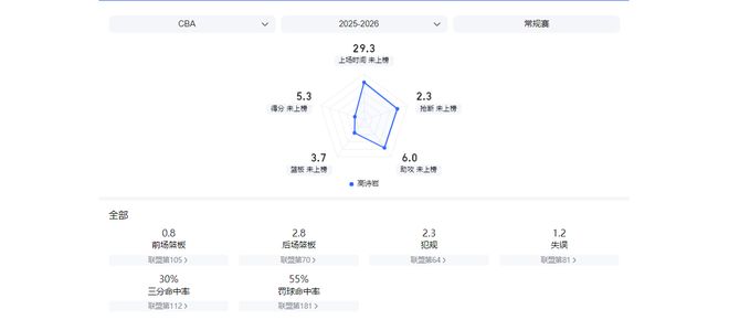 第四位:高诗岩数据层面:本赛季6次出场后,高诗岩场均仅能为山东男篮贡献5.3分,投篮命中率低至28.6%。
