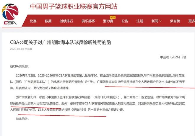 在上一轮与山西队的比赛中,徐昕在刘传兴背后完成单手补扣,随后在庆祝的时候,霸气地做出割喉动作。正是因为这个动作,被CBA公司认定为“挑衅性的不当手势”!经过认定,徐昕的这个行为,违反了体育运动精神。