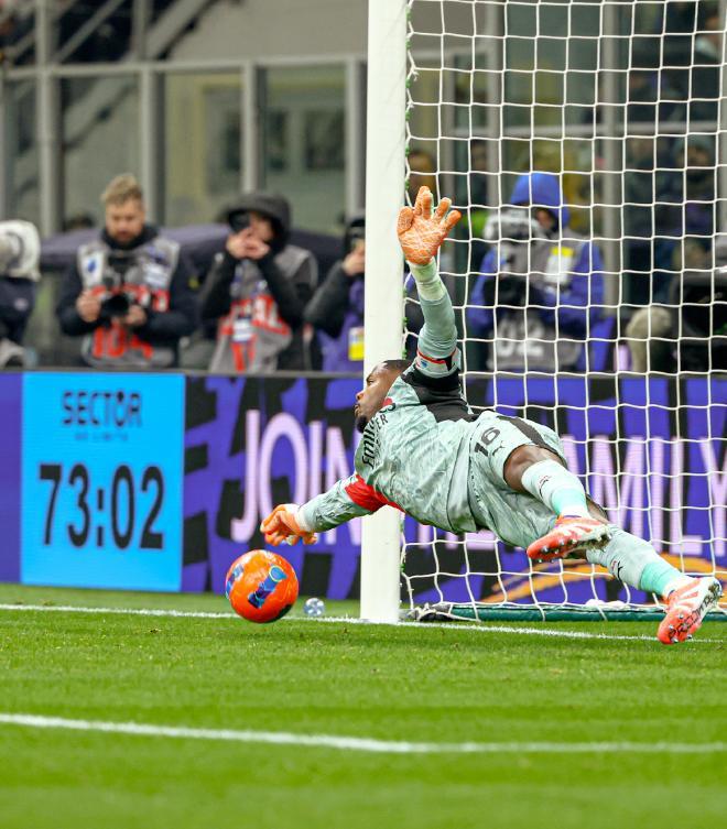 不甘心主场输球的国米,随后发起了疯狂的反扑,第70分钟小图拉姆禁区内被帕夫洛维奇踩脚,主裁给了蓝黑军团一粒点球,但战旧主的恰尔汗奥卢点射被迈尼昂扑出,错失扳平比分的绝佳机会。