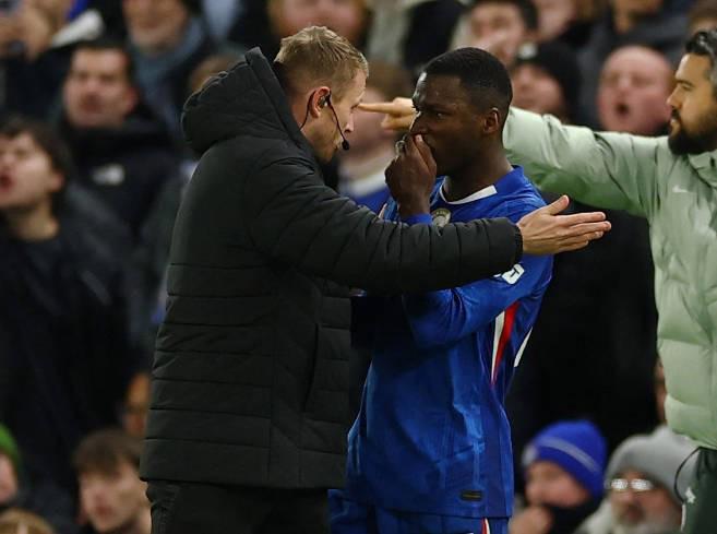 上半场比赛,切尔西一人染黄(库库雷利亚)、一人染红(凯塞多),而阿森纳则有四名球员染黄,分别是莫斯克拉、因卡皮耶、卡拉菲奥里和苏比门迪。