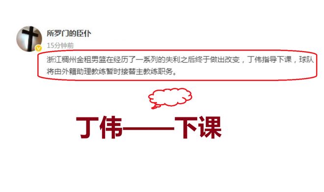 根据篮球媒体人“所罗门的臣仆”透露,浙江队经过了一系列的输球之后,终于是做出了一个决定,那就是丁伟下课。接下来,球队将会由外籍助理教练担任球队主教练之职。由此一来,丁伟就成为了CBA新赛季第三个下课的主教练。实话实说:丁伟下课,笔者也没有什么好说的!在此,只能祝愿丁伟下一次上任时间来得快一些。加油!相关资讯