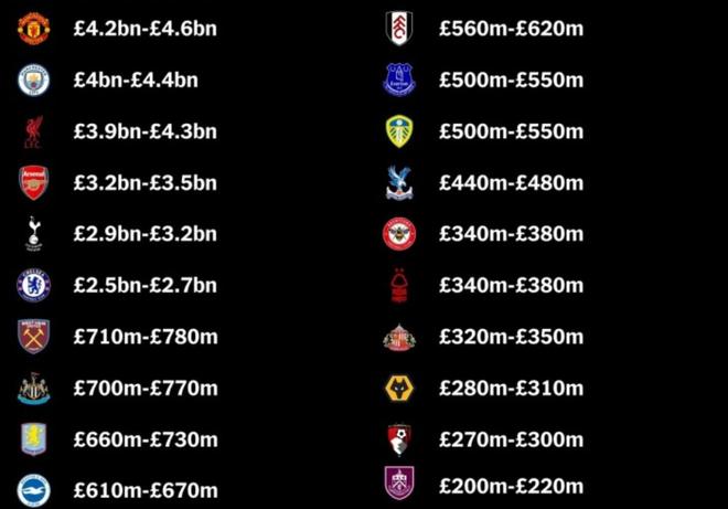 12月27日,TA发布了英超各支球队的估值情况,这份榜单由TA查看了英超各家俱乐部的财务情况,并且综合了相关数据,其中包括Football Benchmark、福布斯、Kinnaird和Sportico等相关媒体的数据,给出的这份榜单,还是具备一定的权威性的。在这份榜单当中,曼联以46亿英镑的估值领跑英超,排名第2的则是曼城的44亿英镑,紧随其后的是43亿的利物浦,这也是所有超过40亿英镑的英超俱乐部。